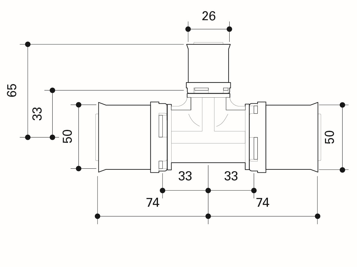 Fränkische T-Stück alpex L 50 x 26 x 50 mm, PPSU, reduziert