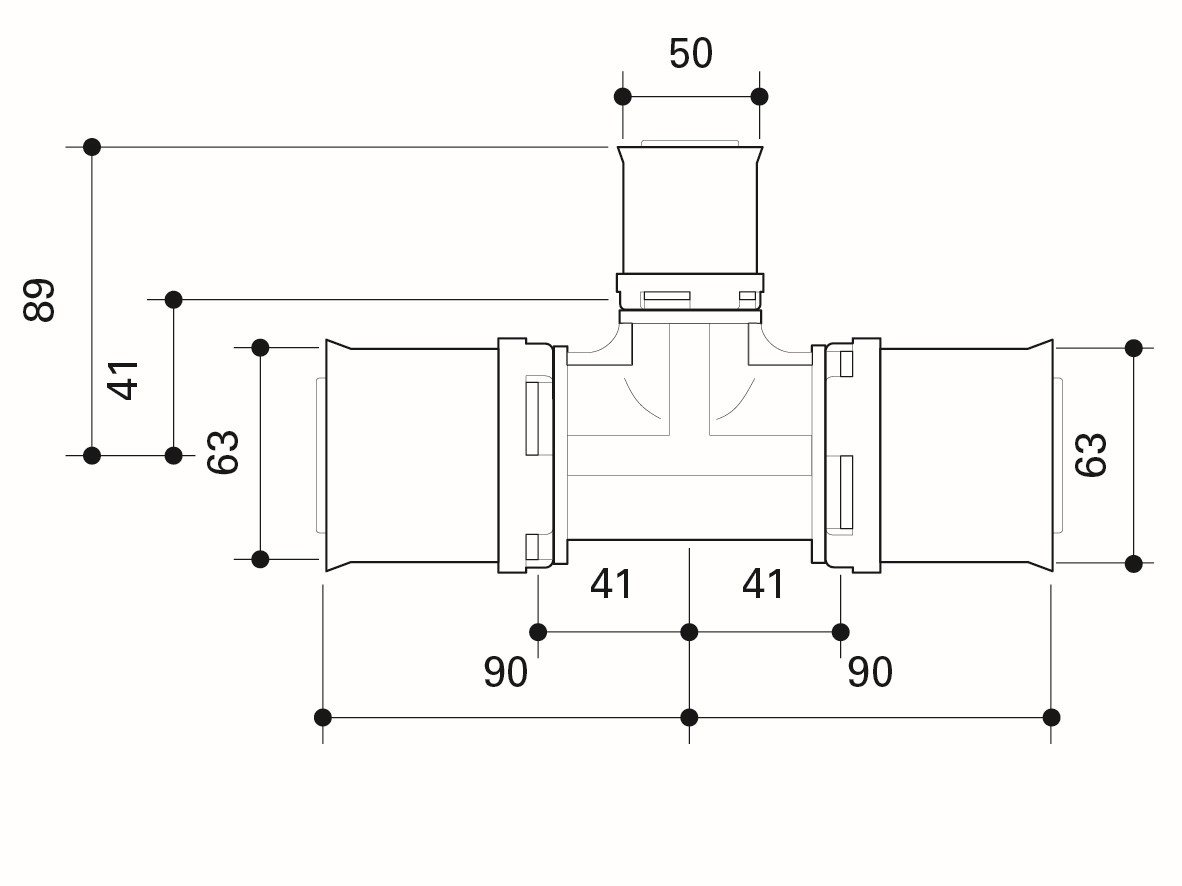 Fränkische T-Stück alpex L 63 x 50 x 63 mm, PPSU, reduziert