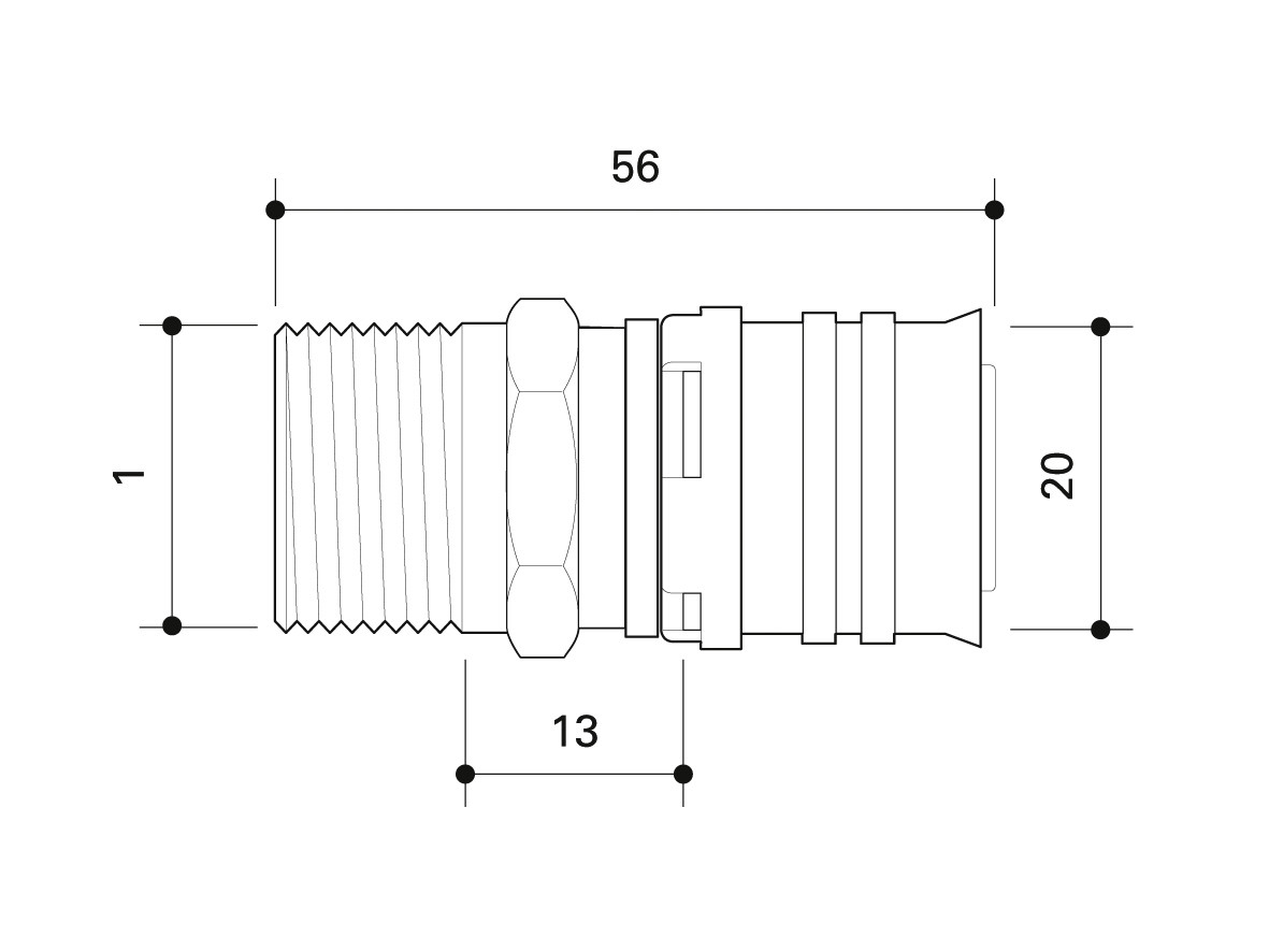 | Rohraußendurchmesser Anschluss 1 | 20 mm |