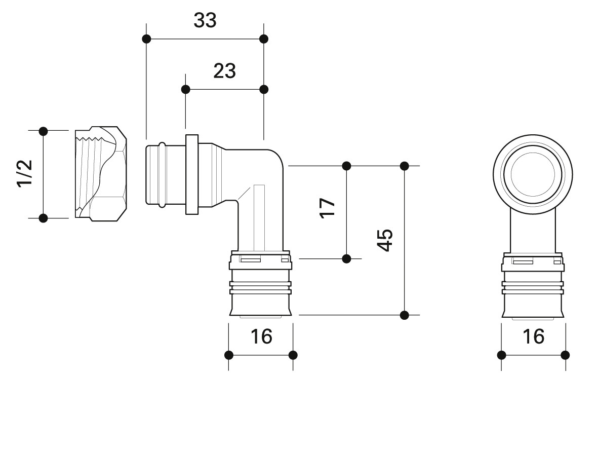 Fränkische Übergangswinkel alpex F50 PROFI 16 mm x G 1/2, Fix Anschluss Uni, entzinkungsbeständiger Messing 168744