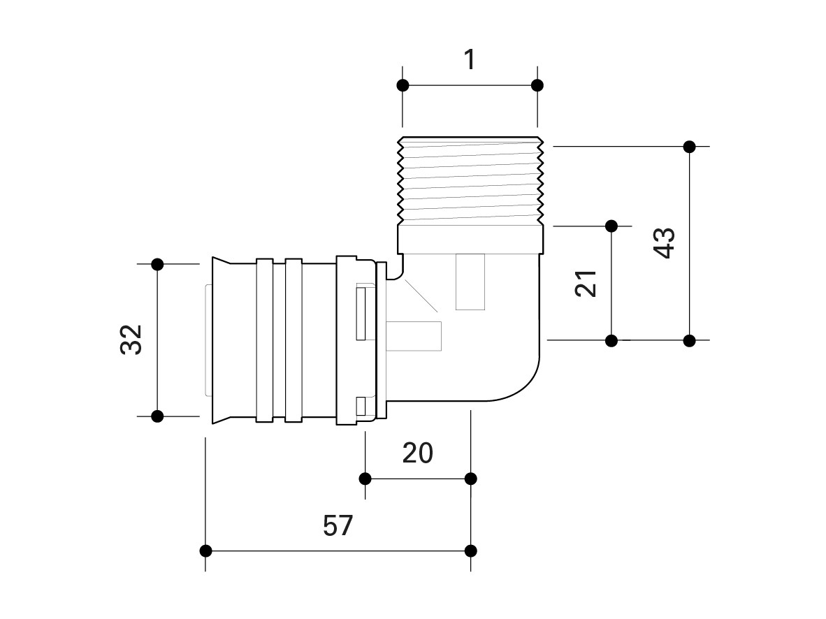 Fränkische Übergangswinkel alpex 32 mm x R 1, 90Grad, mit Außengewinde, Siliziumbronze