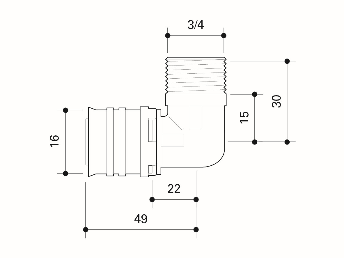 Fränkische Übergangswinkel alpex F50 PROFI 16 mm x R 3/4, 90Grad, mit AG, entzinkungsbeständiges Messing W891023