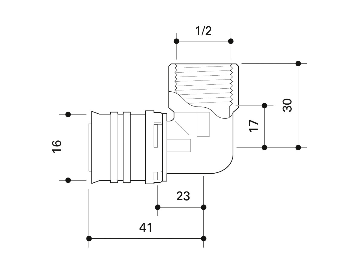 Fränkische Übergangswinkel alpex F50 PROFI 16 mm x Rp 1/2, 90Grad, mit IG, entzinkungsbeständiges Messing 155215