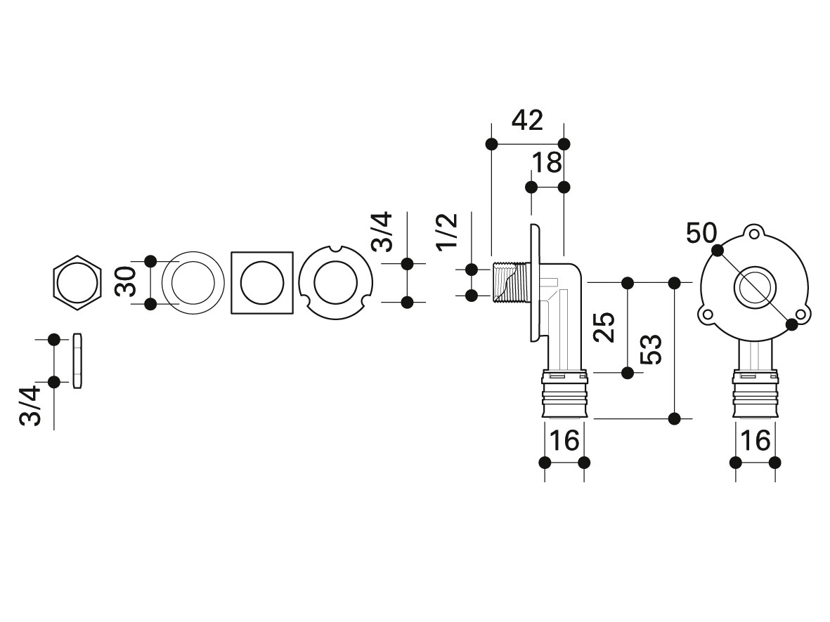 | Dimension | 24 mm, 16 mm x Rp 1/2 x G 3/4 |