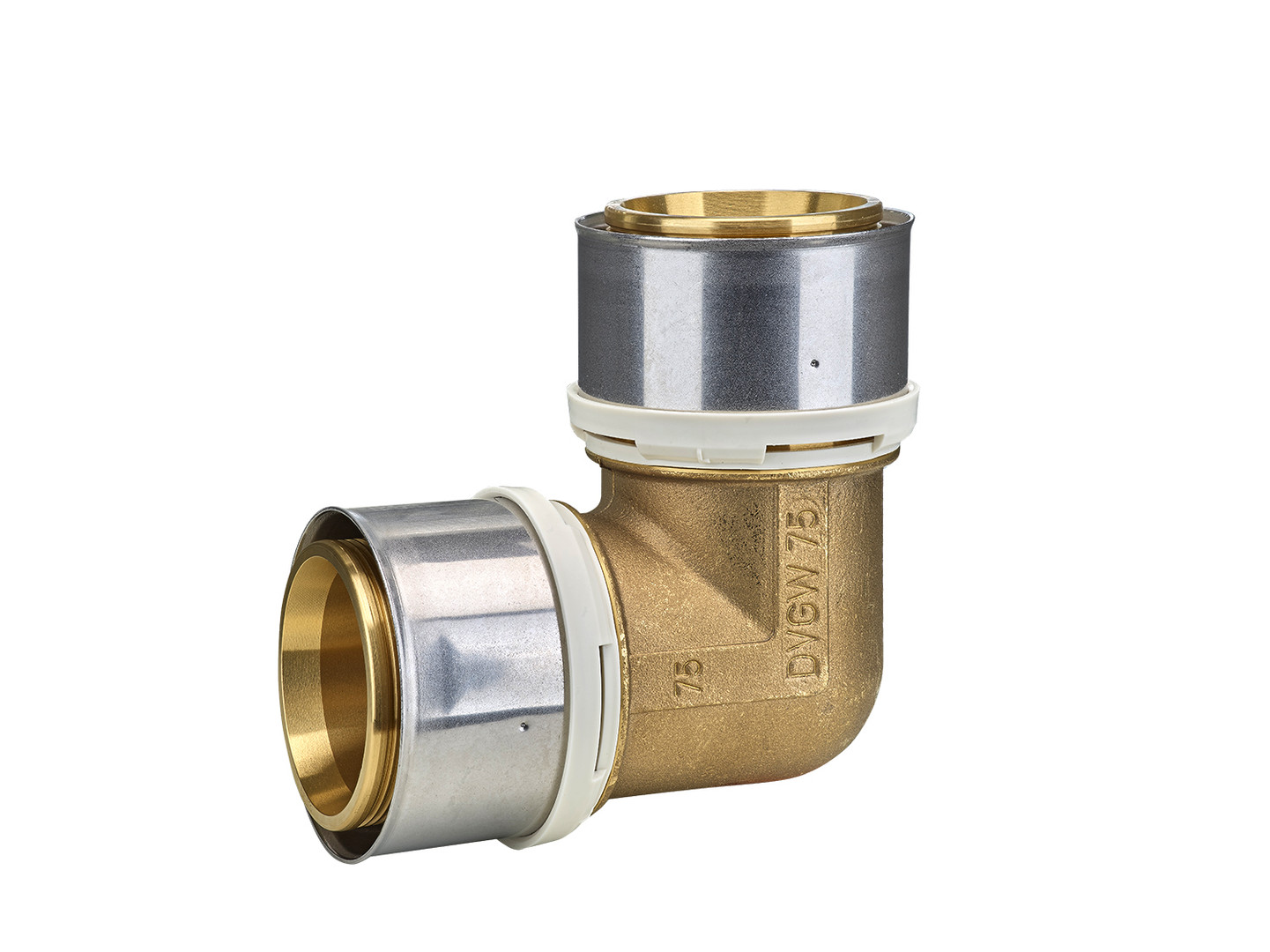 zur Installation von Trinkwasser- und Heizungssystemen mit weißen Fixierringen mit integrierten Sichtfenstern, fixierten Edelstahlpresshülsen und Leckagefunktion