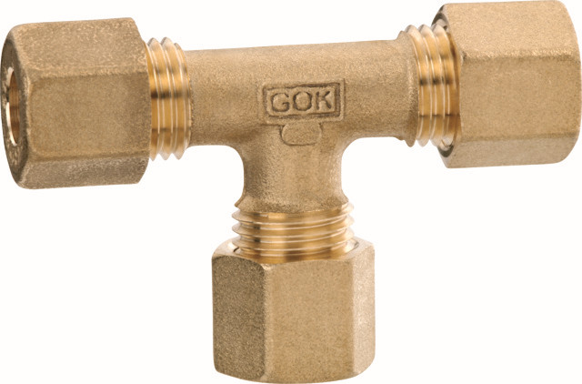 GOK T-Verschraubung T-MS RVS 8 x RVS 8 x RVS 8 mm, Baureihe L, Messing, mit Schneidring Typ D-MS
