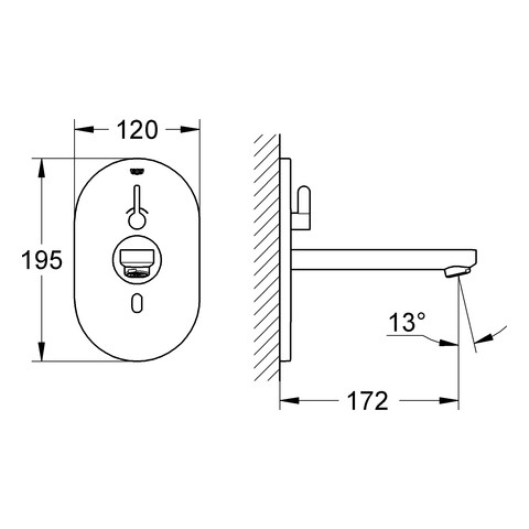 GROHE Fertigmontageset Eurosmart CE Ausladung 17,2 cm, Infrarot-Waschtisch-Wand-Armatur, mit Mischung, Netzbetrieb, chrom W295925