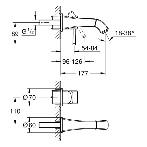 GROHE Fertigmontageset Grandera UP-2-Loch-Waschtischarmatur, Ausladung 17,7cm, chrom