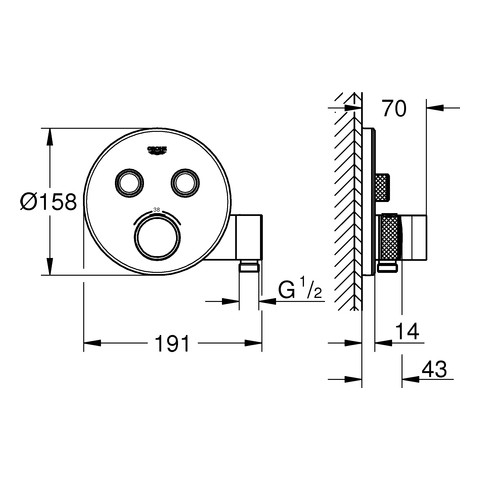 GROHE Fertigmontageset Grohtherm Smartcontrol UP-Thermostat, 2 Absperrventile, Brausehalter, rund, chrom