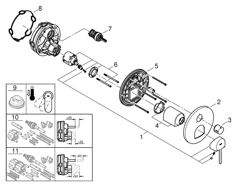 GROHE Fertigmontageset PLUS UP-Einhebelmischer, 3-Wege-Umstellung, supersteel