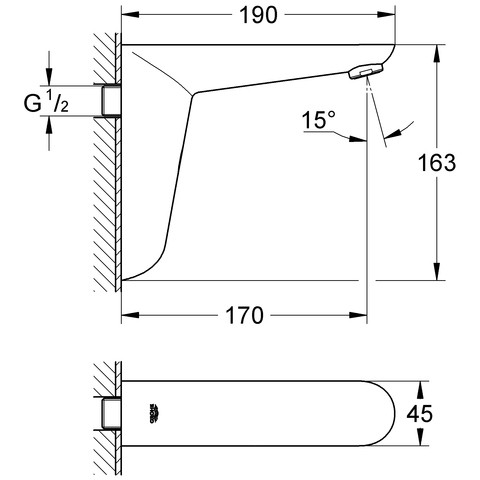 GROHE Infrarot-Waschtisch-Wand-Armatur Euroeco CE ohne Mischung, Batteriebetrieb, chrom