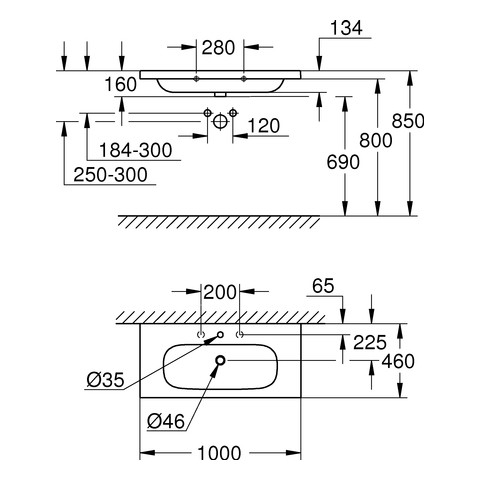 GROHE Möbelwaschtisch Euro Keramik 100 x 46 cm, mit Überlauf, alpinweiß W51534