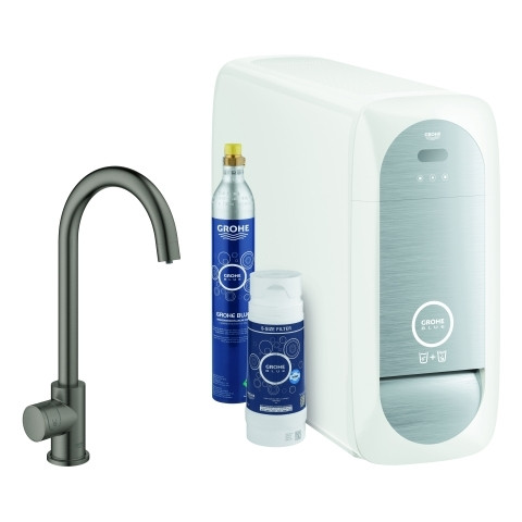 GROHE Spültisch-Einhebelmischer Blue Home C-Auslauf, Mono Starter Kit, hard graphite gebürstet W294630