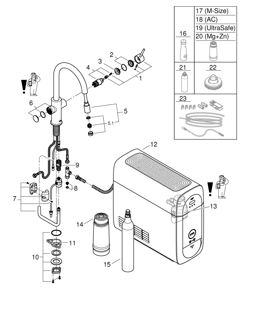 mit Filterfunktion, Einlochmontage Drucktasten für 3 gefilterte und gekühlte Tafelwasserarten still, medium, sprudelnd, Long-Life Oberfläche, SilkMove 28 mm Keramikkartusche, schwenkbarer Rohrauslauf, Schwenkbereich 360°, getrennte Wasserführung für gefiltertes und ungefiltertes Wasser, flexible Anschlussschläuche, Blue Home Kühler liefert 3 Liter gekühltes, sprudelndes Wasser pro Stunde, 180 Watt Kühleinheit, 230V, 50Hz, Lautstärke im Standby Betrieb 44 dB(A), Schutzart IP 21, benötigt Ventilationsöffnungen im Boden des Küchenschranks, Anzeige und Überwachung von Verbrauchsdaten, Filter- bzw. CO2-Kapazität über Watersystems App, Push Benachrichtigung bei niedriger Filter- bzw. CO2-Kapazität, mit Bluetooth 4.0 und WIFI Datenkommunikation für Apple und Android Geräte, Reichweite bis zu 10 m abhängig von Wand- und Bodenbelägen, Blue Filter S-Size, Filterkopf mit flexibler Wasserhärteeinstellung für Regionen mit Wasserhärte über 9° dKH, für Regionen mit Wasserhärte unter 9° dKH bitte Aktivkohlefilter 40 547 001 bestellen, passende Filter: Blue Filter S-Size, M-Size, Blue Aktivkohlefilter, Blue UltraSafe Filter und Blue Magnesium und Zink Filter, Blue 425 g CO2-Flasche enthält Komponente, welche als Gefahrstoff gilt