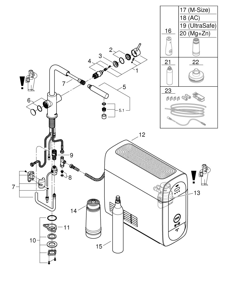 mit Filterfunktion, Einlochmontage Drucktasten für 3 gefilterte und gekühlte Tafelwasserarten still, medium, sprudelnd, Long-Life Oberfläche, SilkMove 28 mm Keramikkartusche, schwenkbarer Rohrauslauf, Schwenkbereich 360°, getrennte Wasserführung für gefiltertes und ungefiltertes Wasser, flexible Anschlussschläuche, Blue Home Kühler liefert 3 Liter gekühltes, sprudelndes Wasser pro Stunde, 180 Watt Kühleinheit, 230V, 50Hz, Lautstärke im Standby Betrieb 44 dB(A), Schutzart IP 21, benötigt Ventilationsöffnungen im Boden des Küchenschranks, Anzeige und Überwachung von Verbrauchsdaten, Filter- bzw. CO2-Kapazität über Watersystems App, Push Benachrichtigung bei niedriger Filter- bzw. CO2-Kapazität, mit Bluetooth 4.0 und WIFI Datenkommunikation für Apple und Android Geräte, Reichweite bis zu 10 m abhängig von Wand- und Bodenbelägen, Blue Filter S-Size, Filterkopf mit flexibler Wasserhärteeinstellung für Regionen mit Wasserhärte über 9° dKH, für Regionen mit Wasserhärte unter 9° dKH bitte Aktivkohlefilter 40 547 001 bestellen, passende Filter: Blue Filter S-Size, M-Size, Blue Aktivkohlefilter, Blue UltraSafe Filter und Blue Magnesium und Zink Filter, Blue 425 g CO2-Flasche enthält Komponente, welche als Gefahrstoff gilt