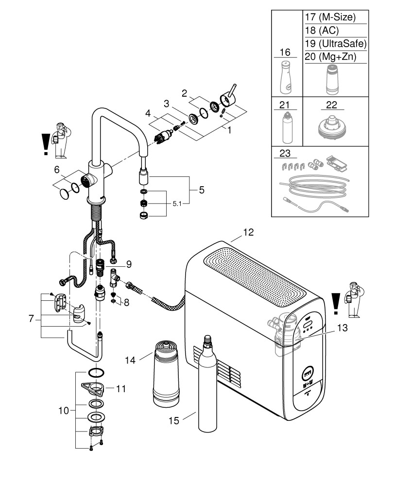 mit Filterfunktion, Einlochmontage Drucktasten für 3 gefilterte und gekühlte Tafelwasserarten still, medium, sprudelnd, Long-Life Oberfläche, SilkMove 28 mm Keramikkartusche, schwenkbarer Rohrauslauf, Schwenkbereich 360°, getrennte Wasserführung für gefiltertes und ungefiltertes Wasser, flexible Anschlussschläuche, Blue Home Kühler liefert 3 Liter gekühltes, sprudelndes Wasser pro Stunde, 180 Watt Kühleinheit, 230V, 50Hz, Lautstärke im Standby Betrieb 44 dB(A), Schutzart IP 21, benötigt Ventilationsöffnungen im Boden des Küchenschranks, Anzeige und Überwachung von Verbrauchsdaten, Filter- bzw. CO2-Kapazität über Watersystems App, Push Benachrichtigung bei niedriger Filter- bzw. CO2-Kapazität, mit Bluetooth 4.0 und WIFI Datenkommunikation für Apple und Android Geräte, Reichweite bis zu 10 m abhängig von Wand- und Bodenbelägen, Blue Filter S-Size, Filterkopf mit flexibler Wasserhärteeinstellung für Regionen mit Wasserhärte über 9° dKH, für Regionen mit Wasserhärte unter 9° dKH bitte Aktivkohlefilter 40 547 001 bestellen, passende Filter: Blue Filter S-Size, M-Size, Blue Aktivkohlefilter, Blue UltraSafe Filter und Blue Magnesium und Zink Filter, Blue 425 g CO2-Flasche enthält Komponente, welche als Gefahrstoff gilt