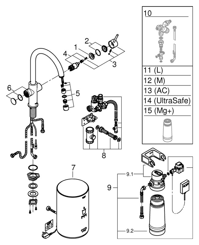 ChildLock Drucktasten für kochendes Wasser, TÜV zertifizierte elektronische Sicherung gegen versehentliches Aktivieren, Long-Life Oberfläche, SilkMove 28 mm Keramikkartusche, isolierter Rohrauslauf, Schwenkbereich 150°, getrennte Wasserwege, flexible Anschlussschläuche, Red Boiler Größe M, Hochdruckboiler für kochendes und warmes Wasser, 3 l 100 °C kochendes Wasser, 4 l Gesamtkapazität, Betriebsdruck 1-7 bar, mit flexiblem Anschlussschlauch und Abgang für kochendes Wasser, Anschlussspannung 230 V/50 Hz, Leistungsaufnahme 2100 W, Leistungsaufnahme Standby 15 W, Blue S-Size Filter Starter Set, zum Schutz des Boilers vor Verkalkung, Kapazität 600 l bei 20° dKH, Durchflussmesser