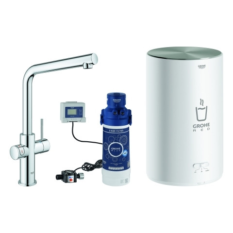 GROHE Spültisch-Einhebelmischer Red Duo L-Auslauf, mit Boiler Größe M, chrom