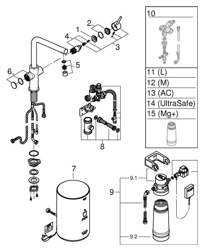 ChildLock Drucktasten für kochendes Wasser, TÜV zertifizierte elektronische Sicherung gegen versehentliches Aktivieren, Long-Life Oberfläche, SilkMove 28 mm Keramikkartusche, isolierter Rohrauslauf, Schwenkbereich 150°, getrennte Wasserwege, flexible Anschlussschläuche, Red Boiler Größe M, Hochdruckboiler für kochendes und warmes Wasser, 3 l 100 °C kochendes Wasser, 4 l Gesamtkapazität, Betriebsdruck 1-7 bar, mit flexiblem Anschlussschlauch und Abgang für kochendes Wasser, Anschlussspannung 230 V/50 Hz, Leistungsaufnahme 2100 W, Leistungsaufnahme Standby 15 W, Blue S-Size Filter Starter Set, zum Schutz des Boilers vor Verkalkung, Kapazität 600 l bei 20° dKH, Durchflussmesser