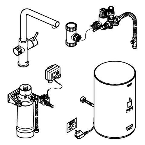 ChildLock Drucktasten für kochendes Wasser, TÜV zertifizierte elektronische Sicherung gegen versehentliches Aktivieren, Long-Life Oberfläche, SilkMove 28 mm Keramikkartusche, isolierter Rohrauslauf, Schwenkbereich 150°, getrennte Wasserwege, flexible Anschlussschläuche, Red Boiler Größe M, Hochdruckboiler für kochendes und warmes Wasser, 3 l 100 °C kochendes Wasser, 4 l Gesamtkapazität, Betriebsdruck 1-7 bar, mit flexiblem Anschlussschlauch und Abgang für kochendes Wasser, Anschlussspannung 230 V/50 Hz, Leistungsaufnahme 2100 W, Leistungsaufnahme Standby 15 W, Blue S-Size Filter Starter Set, zum Schutz des Boilers vor Verkalkung, Kapazität 600 l bei 20° dKH, Durchflussmesser