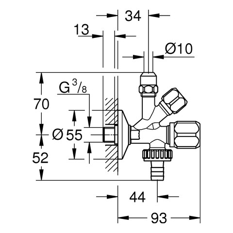 GROHE WAS-Kombi-Eckventil 3/8", chrom, nicht selbstdichtend