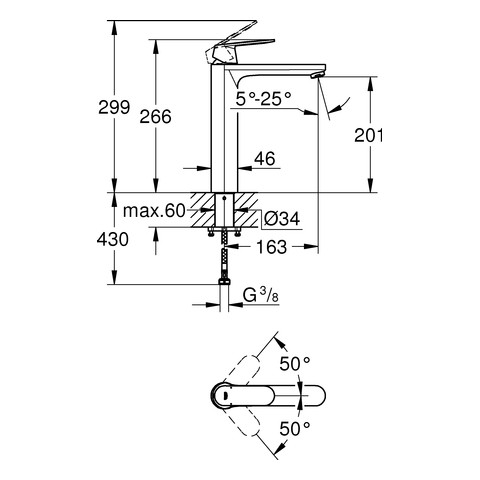 | Aufbauhöhe Unterkante Hahnauslass | 201 mm |