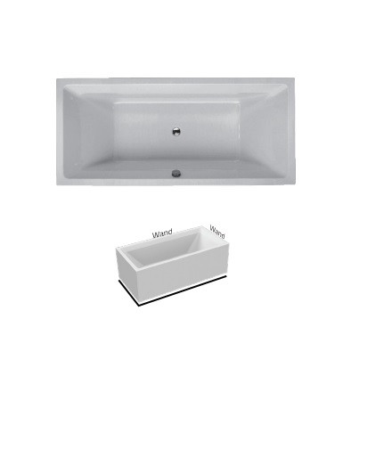 aus Sanitäracryl, Ablauf: Mitte, Überlauf: Mitte vorn, mit Bowdenzug 80 cm, mit Ab- und Überlaufgarnitur (verchromt), mit Füße