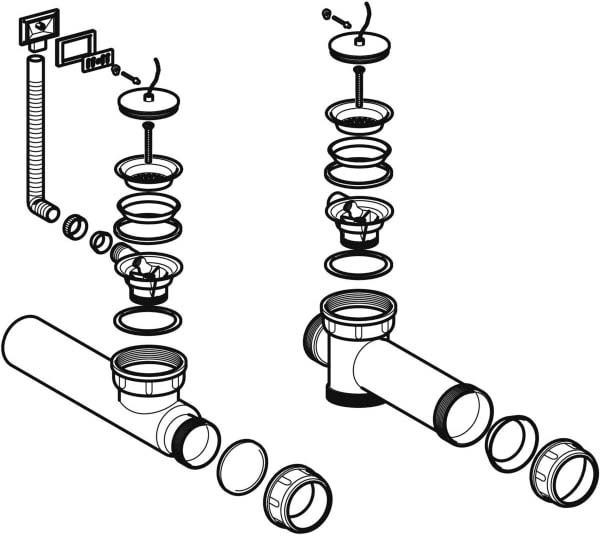 Geberit Ablauf- und Überlaufgarnitur für Mehrzweckbecken mit zwei Becken und eckigem Überlauf W907262