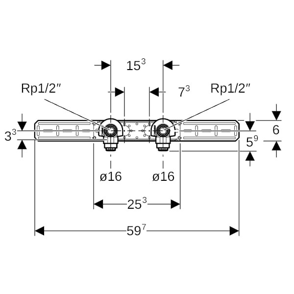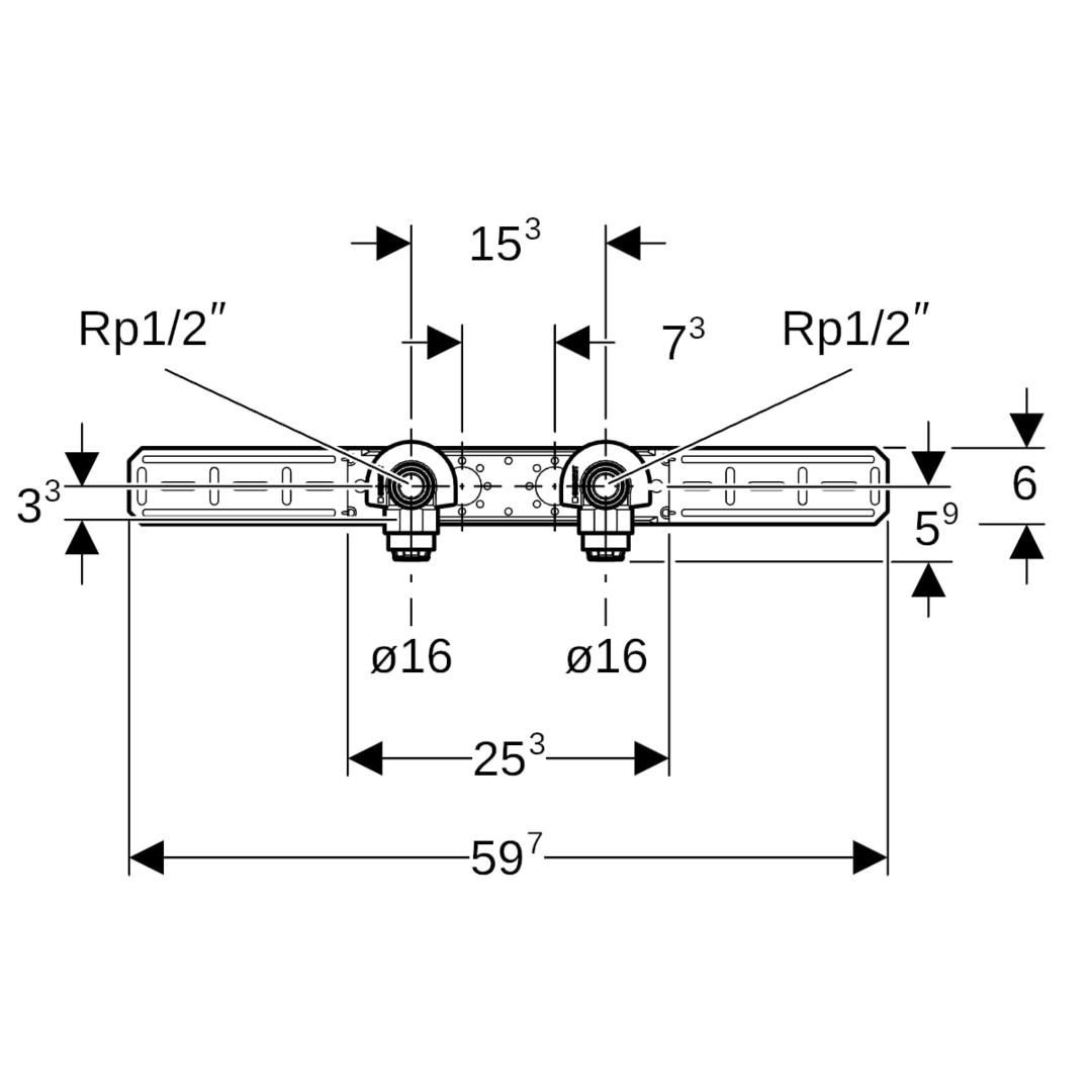 Geberit Anschlusswinkel PushFit Ø 16 mm x Rp 1/2, 90Grad, 2-fach, 52mm, vormontiert, Messing