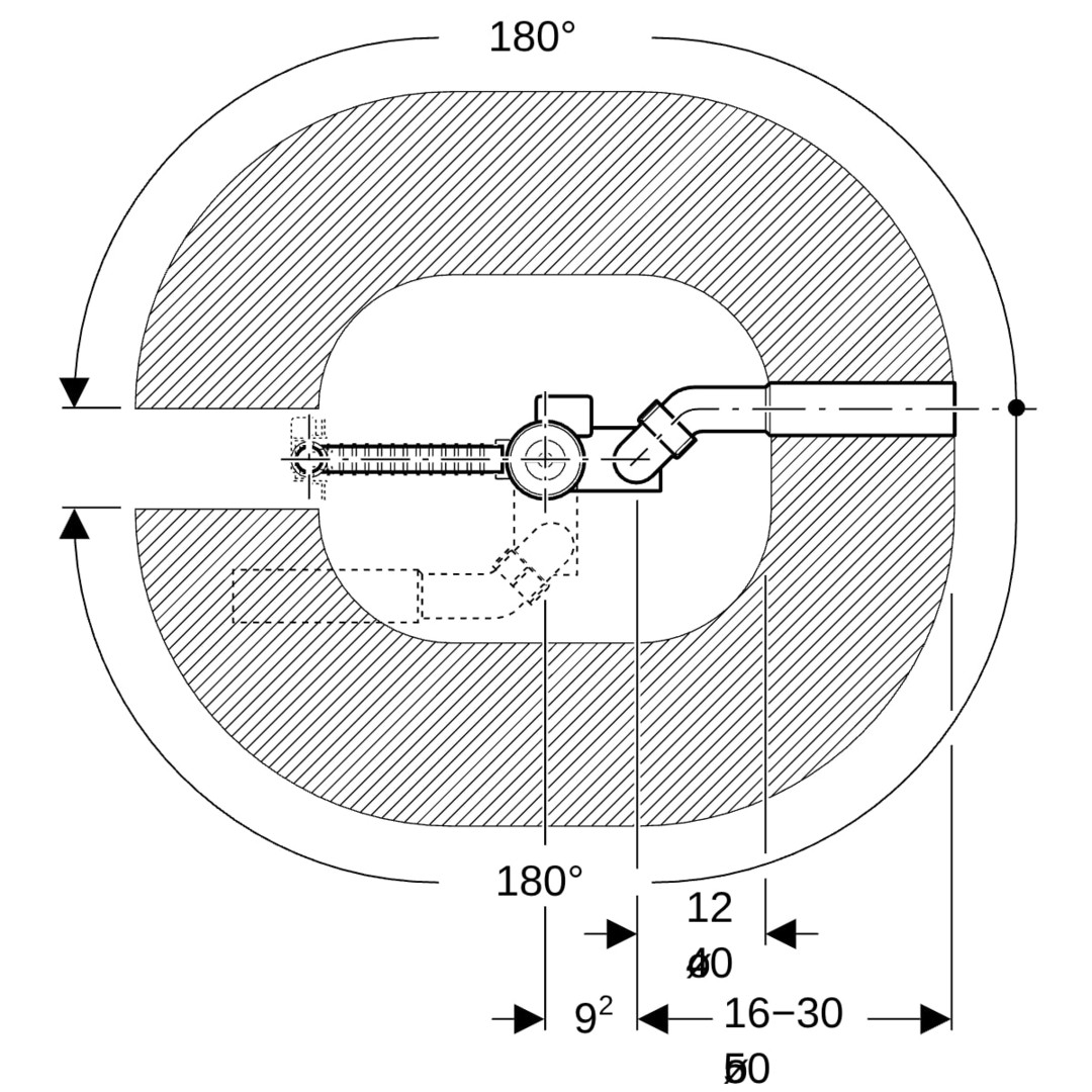 DN 40, für Badewannen mit Ventilloch Ø 52 mm, aus Stahl, Kunststoff oder Guss, in Standardgröße, Güteüberwacht nach EN 274-3, mit Überlauf und Zulauf, Überlaufkopf ausgerichtet befestigbar, doppelseitige Dichtungen an Ab- und Überlauf, Einlaufstrahl ausrichtbar, mit Überlaufkopf mit Zulauf, Ablaufventil, Geruchsverschluss, Anschlusswinkel 90° mit MasterFix, 1/2“, radial dichtend, Anschlussbogen aus PE-HD, Ø 40/50 mm, Bauschutz und Befestigungsmaterial