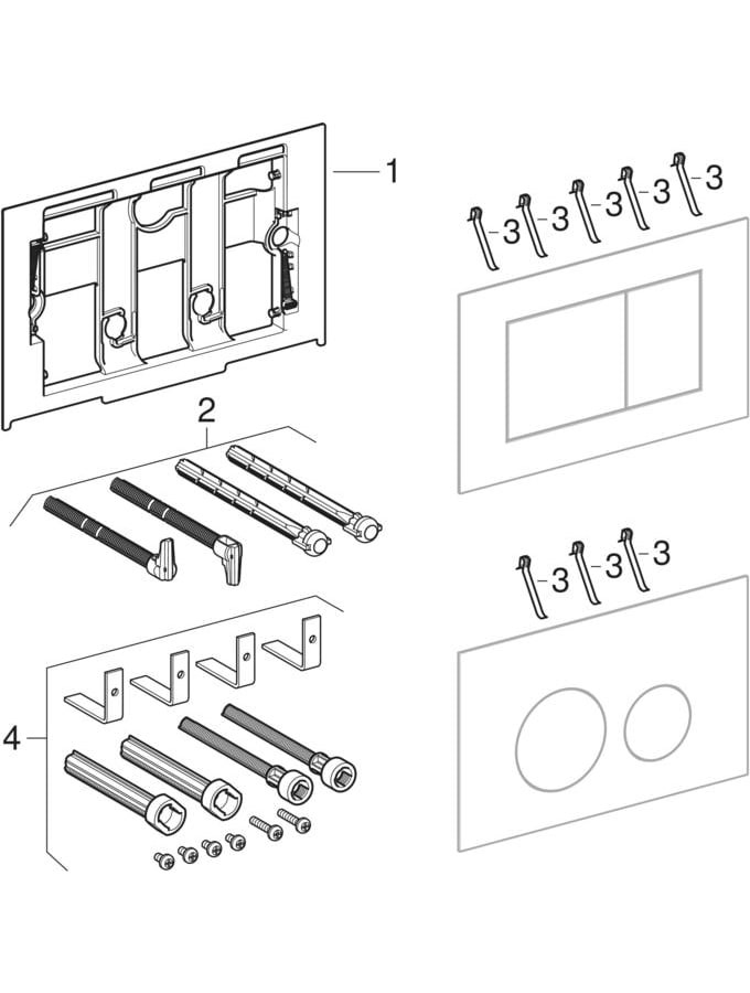 zur Spülauslösung bei Sigma UP-Spülkästen, Betätigung vorne, Drückerstangen schallgedämmt, werkzeuglose Schnelleinstellung, mit Befestigungsrahmen, 2 Distanzbolzen und 2 Drückerstangen