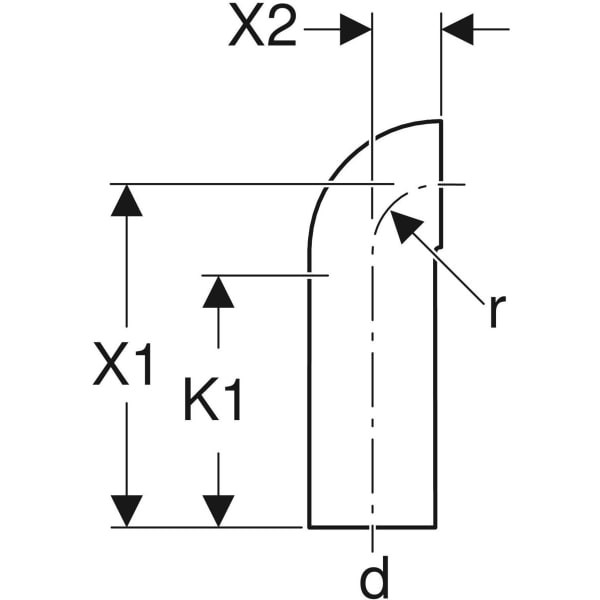 Geberit Bogen PE DN 90, 90Grad, mit langem Schenkel, kleiner Radius, PE-HD W894436