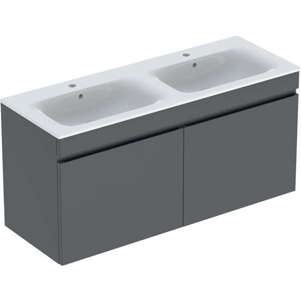 Geberit Doppelwaschtisch-Set Renova Plan 130x62,2x48cm, Korpus/Front lava matt/Waschtisch weiß W50359