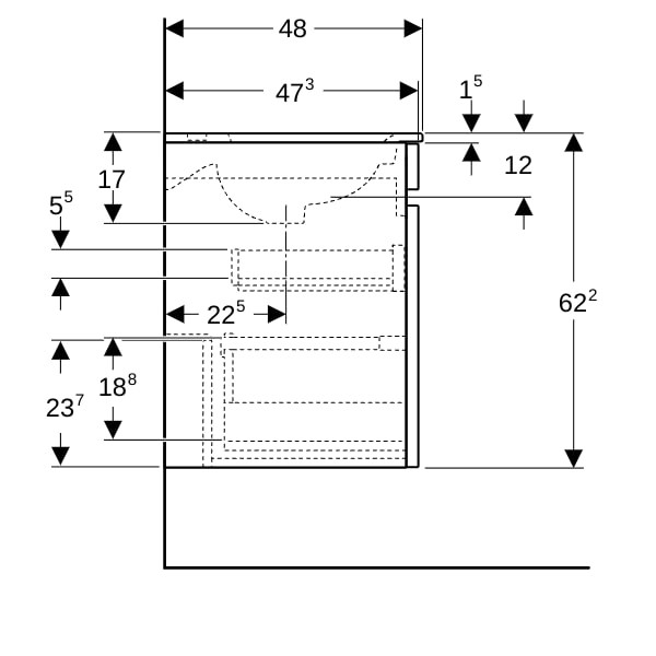 Geberit Doppelwaschtisch-Set Renova Plan 130x62,2x48cm, Korpus/Front lava matt/Waschtisch weiß W50359