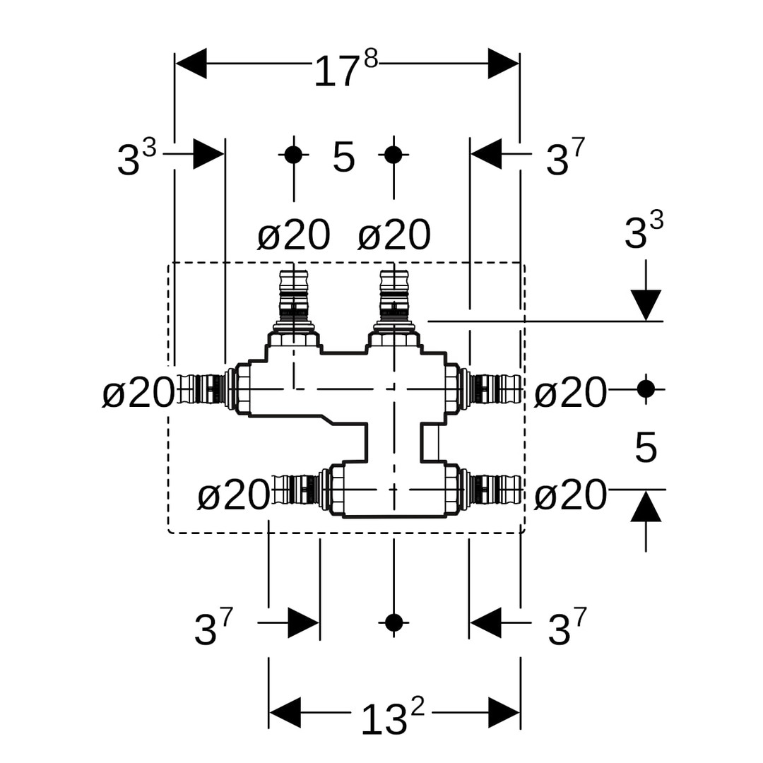 Geberit Kreuzungs-T-Stück Mepla Ø 20 x 20 x 20 mm, mit Dämmbox