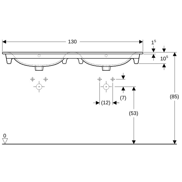 Geberit Möbel-Doppelwaschtisch Renova Plan 130x48cm, mit Hahnloch, mit Überlauf, weiß W50020