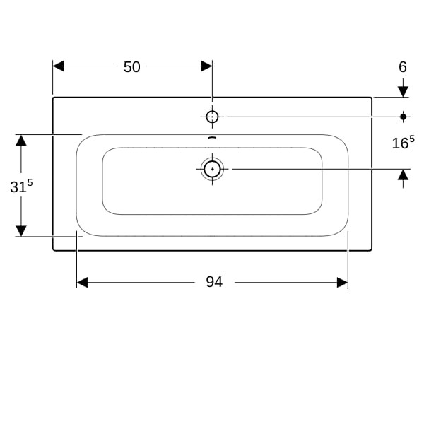 Geberit Möbel-Waschtisch Renova Plan 100 x 48 cm, weiß, mit Hahnloch, mit Überlauf W35655