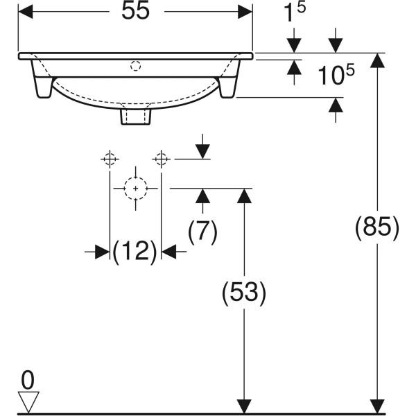 zur Montage auf Waschtischunterschränken, schmaler Rand