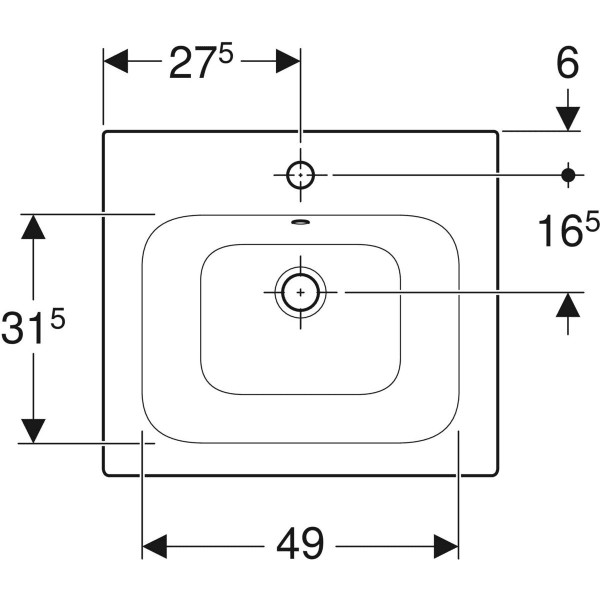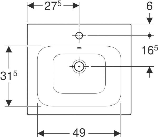 Geberit Möbel-Waschtisch Renova Plan 55 x 48 cm, weiß, mit Hahnloch, mit Überlauf W35659