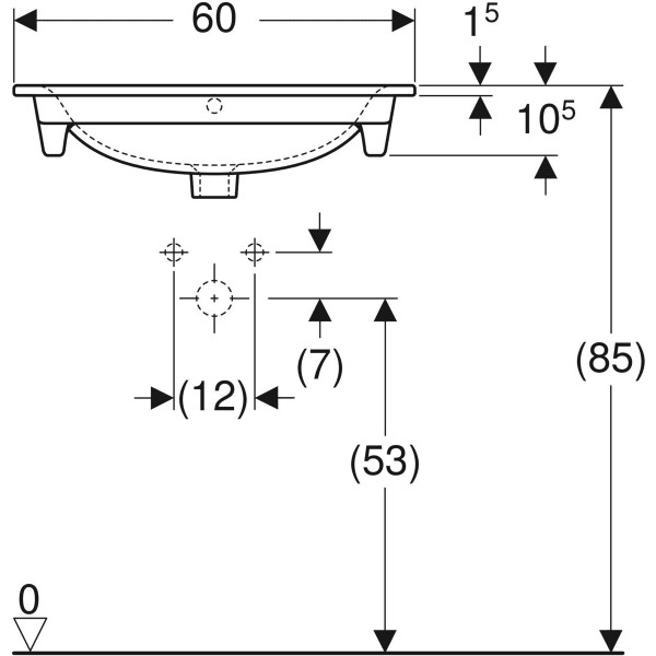 Geberit Möbel-Waschtisch Renova Plan 60 x 48 cm, weiß, mit Hahnloch, mit Überlauf