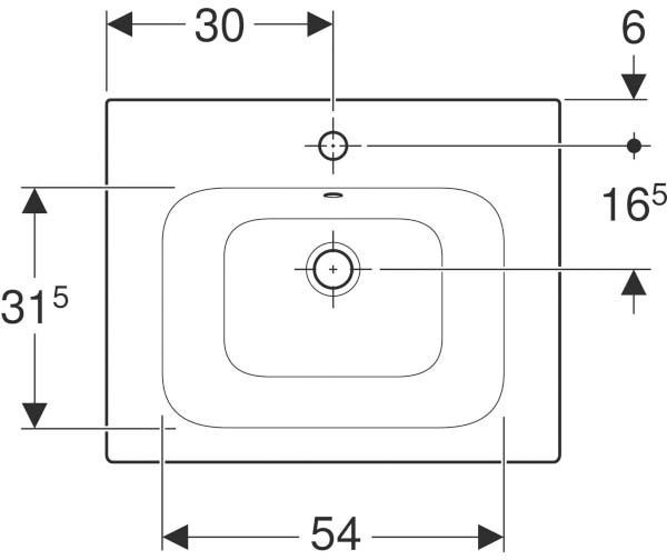 Geberit Möbel-Waschtisch Renova Plan 55 x 48 cm, weiß, mit Hahnloch, mit Überlauf W35659