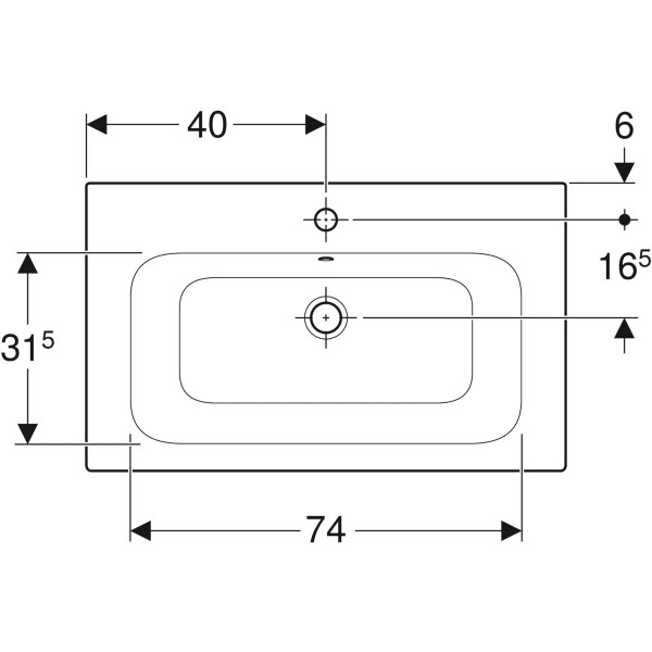 Geberit Möbel-Waschtisch Renova Plan 80 x 48 cm, weiß, mit Hahnloch, mit Überlauf