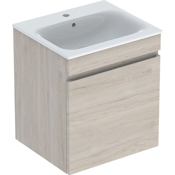 Geberit Möbel-Waschtisch-Set Renova Plan 55x62,2x48cm, Korpus nussbaum hell beschichtet, Waschtisch weiß/KeraTect W50324