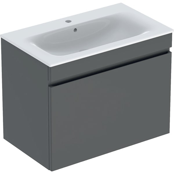 Geberit Möbel-Waschtisch-Set Renova Plan 80x62,2x48cm, Korpus/Front lava matt/Waschtisch weiß W35835