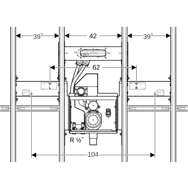 zum Einbau in GIS Tragsysteme für Vorwände, Trennwände oder frei stehende Wände, für ONE Waschtische, für ONE Möbelwaschtische, für ONE Waschtischarmaturen, Wandmontage, für ONE Montageelement, passend zu ONE, Befestigung für Wandarmatur vormontiert, UP-Geruchsverschluss mit Serviceöffnung, Wandeinbaukasten mit Anschlussstutzen aus PE, ø 50/56 mm, Wasseranschluss MasterFix- und MeplaFix-fähig, Wasseranschluss an UP-Gehäuse, unten, UP-Gehäuse für ONE Waschtischarmatur, vormontiert, Verbindungsrohre zwischen UP-Gehäuse und Befestigung für Wandarmatur vormontiert, Absperreinheiten in UP-Gehäuse integriert, Elektroanschlussdose im UP-Gehäuse, mit 2 Konsolen, Bauschutze, 2 Gewindestangen M10, Kupplungsbuchse für Netzanschluss, Befestigungsmaterial