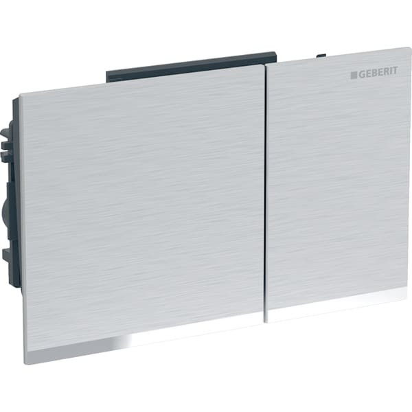 Geberit Omega60 Betätigungsplatte, eckig, 2-Mengen-Spülung: Taste: chrom / gebürstet, easy-to-clean-beschichtet, Designstreifen: chrom / glänzend