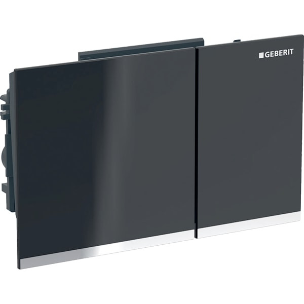Geberit Omega60 Betätigungsplatte, eckig, 2-Mengen-Spülung: Taste: schwarz / Glas glänzend, Designstreifen: Glas verspiegelt
