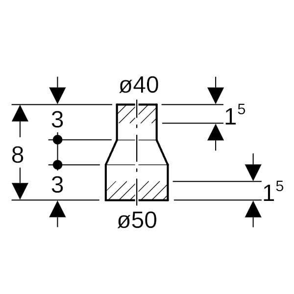Geberit PE Reduktion zentrisch, kurz: d=50mm, d1=40mm