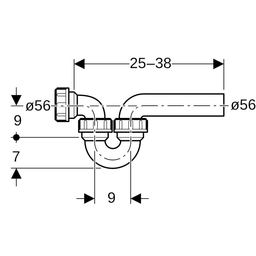 Geberit Rohrbogengeruchsverschluss DN 56/56, Einlauf/Abgang horizontal, PE-HD, schwarz