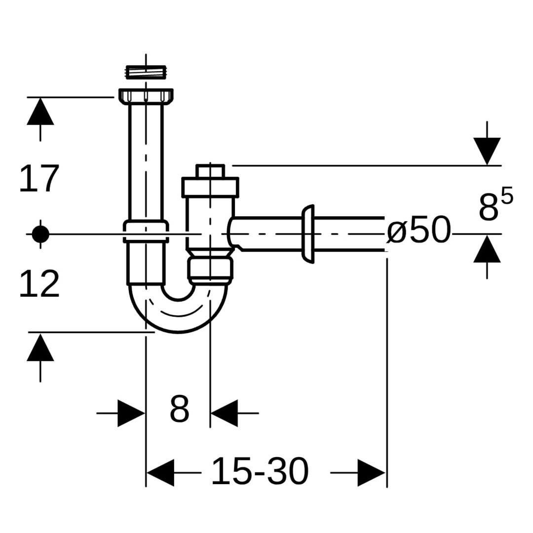 Geberit Rohrbogengeruchsverschluss G1 1/2 x 50 mm, absperrbar, mit Rückflussverhinderung, Abgang horizontal, weiß W346443